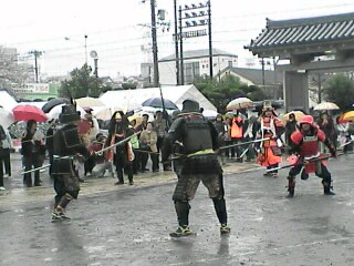 予定くりあげで甲冑寸劇がはじまりました。