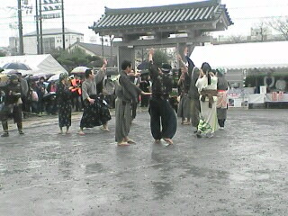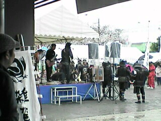 和歌山市駅で鉄砲のパフォーマンスをして、鷲森別院へかえります。