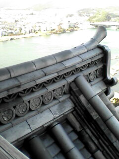 桃のかたちをした可愛らしい瓦がありました。変わってるなー